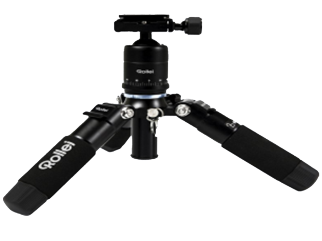 Ein Stativ ist ein Gestell mit drei Beinen, das eine Kamera stabil hält.
