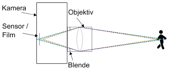 Eine Kamera nimmt Licht durch ein Objektiv auf und erzeugt daraus mithilfe eines Sensors ein Bild.